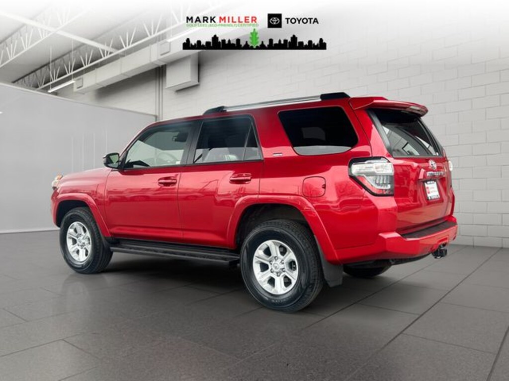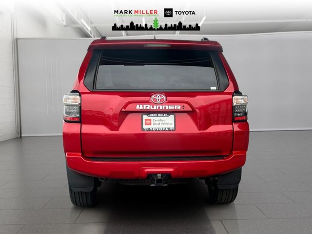 Enjoy a seamless driving experience with the 4Runner's impressive fuel efficiency, delivering an EPA-estimated 16 MPG in the city and 19 MPG on the highway. This SUV also comes loaded with a wealth of cutting-edge technology, including - 8 Speakers, AM/FM radio: SiriusXM, Radio: Audio, Air Conditioning, Rear window defroster, Power driver seat, Power steering, Power windows, Remote keyless entry, Steering wheel mounted audio controls, Speed-sensing steering, Traction control, 4-Wheel Disc Brakes, ABS brakes, Anti-whiplash front head restraints, Dual front impact airbags, Dual front side impact airbags, Emergency communication system: Safety Connect (1-year trial), Front anti-roll bar, Front wheel independent suspension, Knee airbag, Low tire pressure warning, Occupant sensing airbag, Overhead airbag, Rear anti-roll bar, Brake assist, Electronic Stability Control, Exterior Parking Camera Rear, Auto High-beam Headlights, Front fog lights, Panic alarm, Security system, Speed control, Bumpers: body-color, Heated door mirrors, Power door mirrors, Spoiler, Apple CarPlay/Android Auto, Driver door bin, Driver vanity mirror, Front reading lights, Illuminated entry, Leather Shift Knob, Leather steering wheel, Outside temperature display, Overhead console, Passenger vanity mirror, Rear seat center armrest, Tachometer, Telescoping steering wheel, Tilt steering wheel, Trip computer, Fabric Seat Trim, Front Bucket Seats, Front Center Armrest, Split folding rear seat, Passenger door bin, 17" 6-Spoke Alloy Wheels, Alloy wheels, Rear window wiper, Variably intermittent wipers, and 3.727 Axle Ratio.